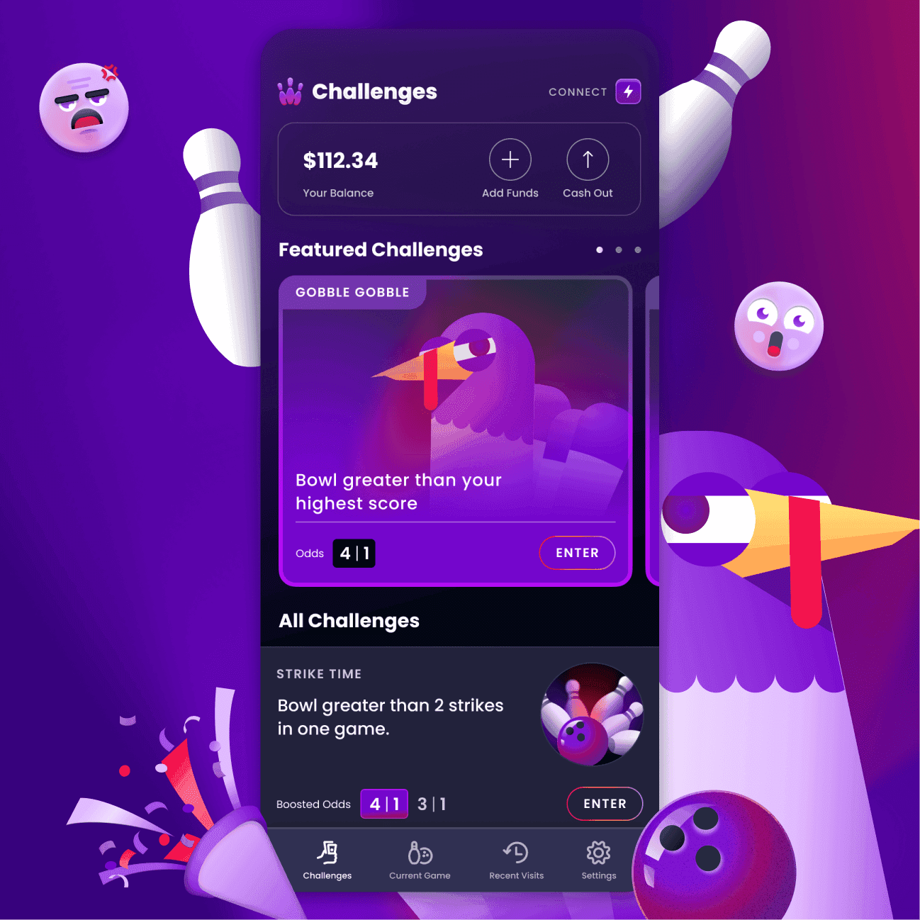 Bowlero aimed to increase revenue by driving repeat visits and encouraging longer stays through a betting-driven experience. The idea was to engage bowlers in a way that enhanced gameplay and incentivized return visits.