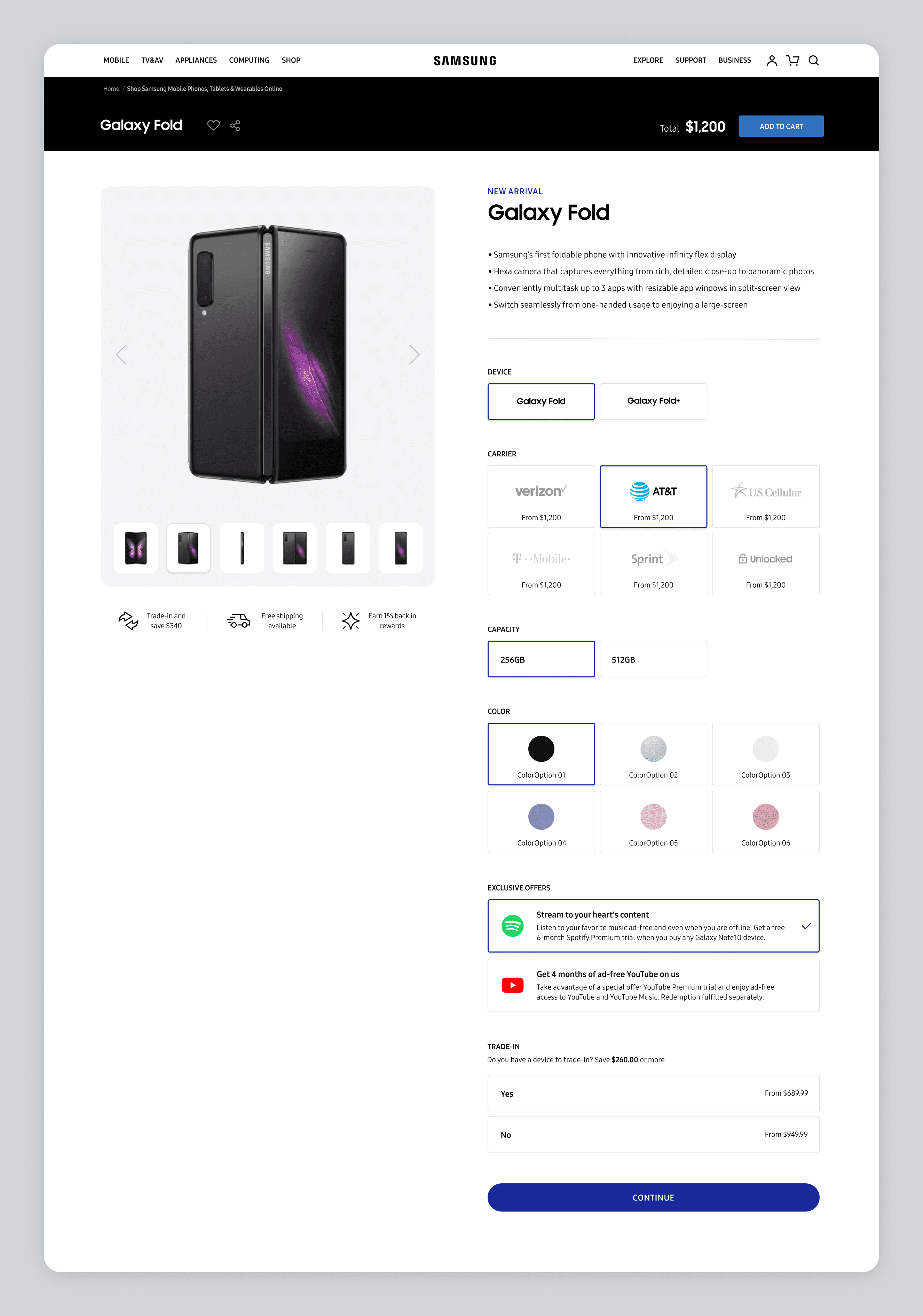 Enhanced Shopping Experience: A new device order flow offering guided user experiences, highlighting carrier options, trade-in availability, and interactive tutorials.